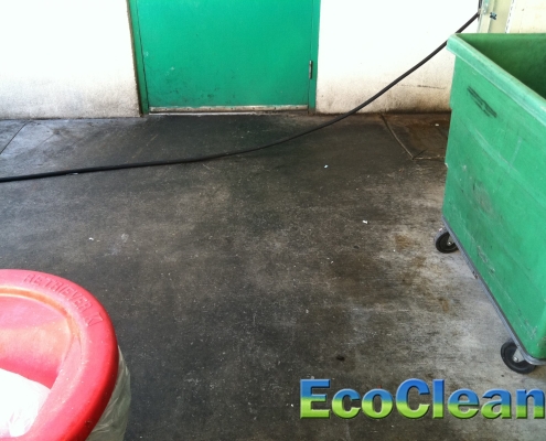 EcoClean has developed the right blend of cleaning agents and emulsifiers to help break down the various contaminates found around dumpster pad and trash compactor areas. Our special blend helps break down even the most stubborn fatty oils, grease, animal byproducts, hydraulic fluid from garbage trucks, and virtually every other contaminate. In addition to thoroughly cleaning the dumpster pad, our solution completely sanitizes the area as well. This added step of sanitizing the dumpster pad greatly helps to minimize if not totally remove any malodors that may exist. As you can see from the pictures above and the other pictures here on this side, having the right cleaning agents along with professional equipment yields amazing results.